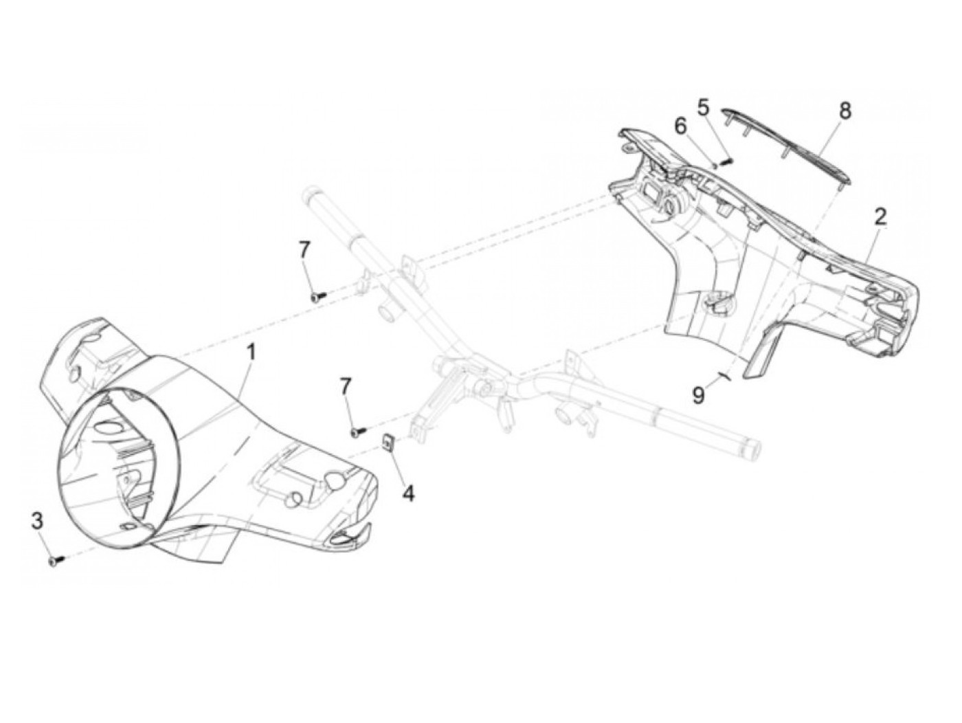 Couvre guidon avant apprêté -PIAGGIO- Vespa GTS 125 (ZAPMA3700), Vespa GTS HPE 300 (ZAPMA3600, ZAPMD310), Vespa GTS Super 125 (ZAPMA3700), Vespa GTS Super HPE 300 (ZAPMA360, ZAPMD3100)