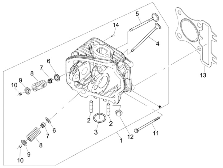 Joint de culasse -PIAGGIO, Leader AC 125- Vespa LX 125 (ZAPM44100, ZAPM44300, ZAPM68100), Vespa LXV 125 (ZAPM68102, ZAPM44301), Vespa S 125 (ZAPM44302, ZAPM68101), Vespa ET4 125 (ZAPM19000), Aprilia Mojito 125 (ZD4RY, ZD4SZA00), Aprilia Sport City One 125