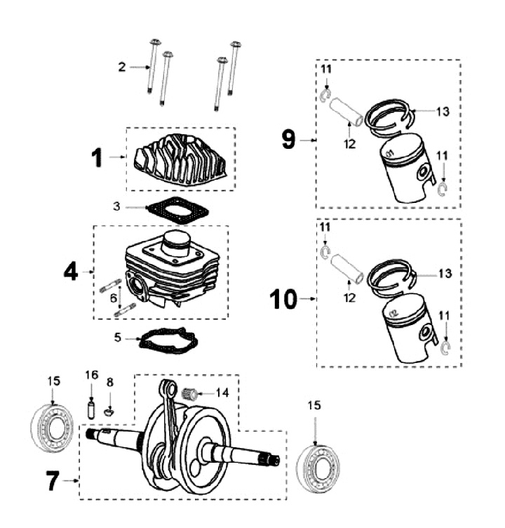 Cylindre (aluminium, piston Pulsair), vilebrequin