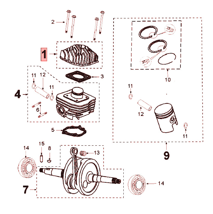 Cylindre (fonte grise, piston IAE), vilebrequin