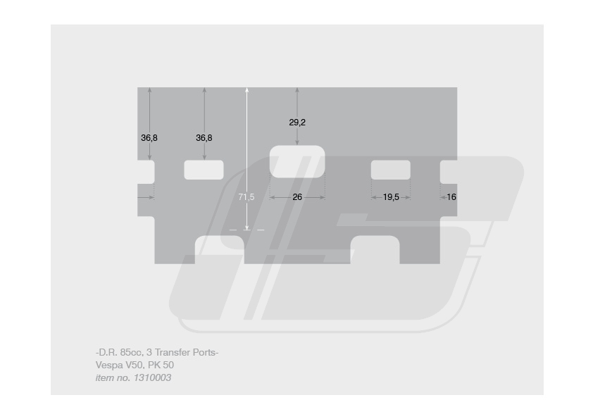 Le 85 cc D.R. est une version à alésage de 50 mm du cylindre de 75 cc D.R. Cependant, pour les tricycles Piaggio APE50, il a été tourné de 1 mm à la base du cylindre par rapport au DR75, laissant la même dimension au sommet du cylindre. L'angle de braquage a donc été réduit à 152°/98° (échappement / débordement) pour permettre d'utiliser le cylindre encore plus tôt dans la plage de vitesse.