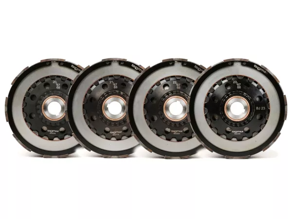 comprend l'embrayage complet prêt à être installé avec les disques d'embrayage bgm PRO Cosa et huit ressorts BGM PRO XL. Un nouveau joint torique pour le couvercle de l'embrayage, la cale en demi-lune et un nouvel écrou d'embrayage sont également inclus. Nous utilisons un écrou avec une pièce de serrage (MBN13023, T2, classe de résistance 10, DBL9440.40) parce que nous avons eu la meilleure expérience avec cela en course avec une puissance d'arbre de plus de 40HP. Couple de serrage 70-75NM. Nous ne recommandons pas d'autres dispositifs de blocage tels que le Nordlock, les rondelles élastiques ondulées (DIN137) ou les rondelles de blocage dentelées (DIN6798).