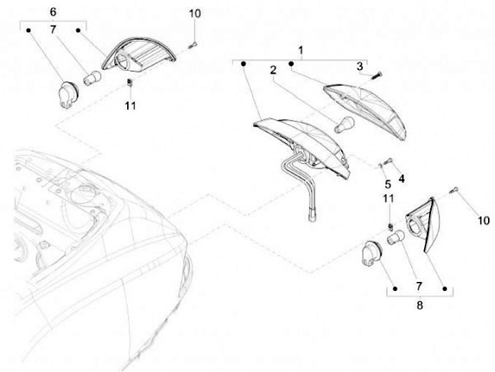 Clignotant -PIAGGIO- Vespa LX, LXV, S - incolore - cabochon pas strié - arrière gauche