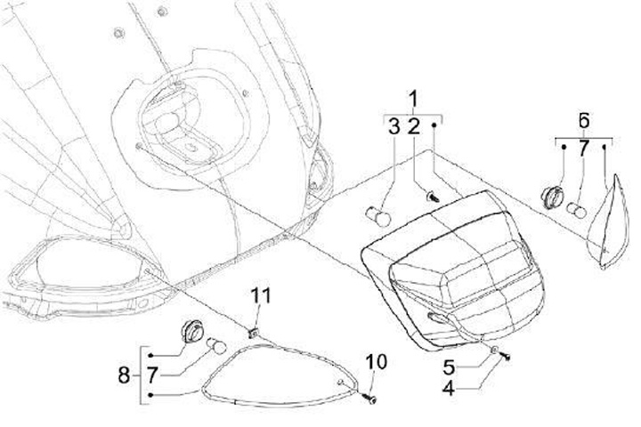 Clignotant -PIAGGIO- Vespa LX, LXV, S - incolore - cabochon pas strié - arrière gauche