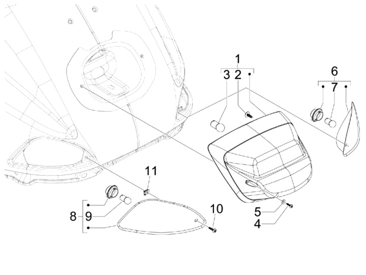 Clignotant -PIAGGIO- Vespa LX, LXV, S - incolore - cabochon pas strié - arrière gauche