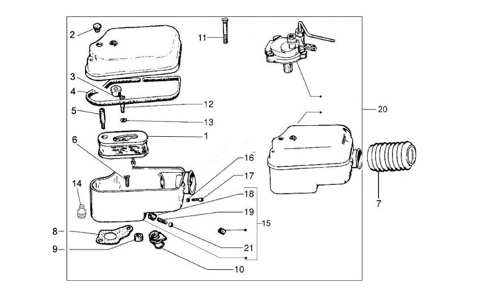 Soufflet -PIAGGIO- Vespa PX (1984-), PX Lusso - également utilisable comme Sprint150, Rally180, Rally200, GT125 (VNL2T), GTR125 (VNL2T), GL150 (VLA1T), Super, VNA, VNB, VBA, VBB