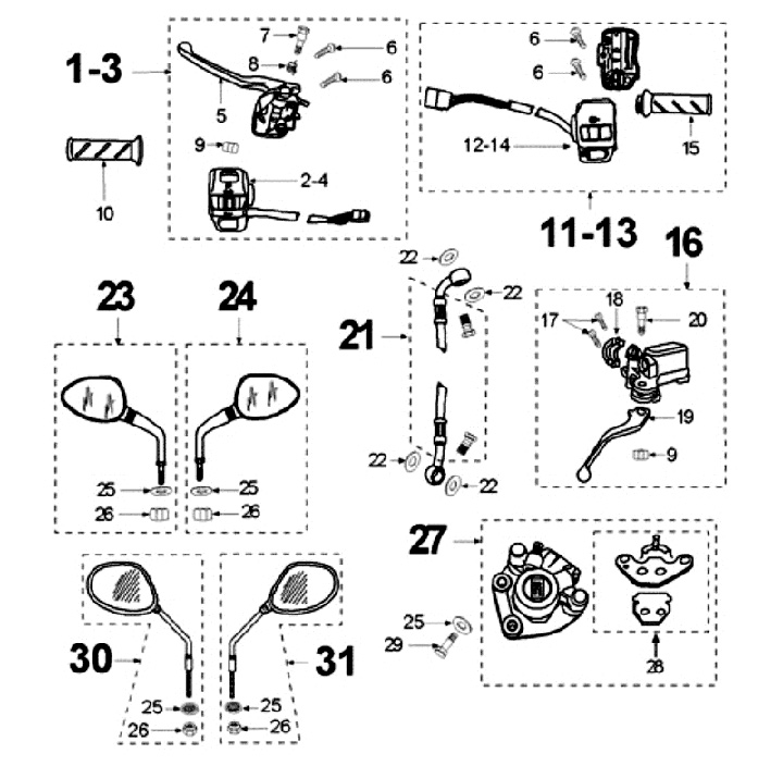 Comodo coté gauche avec lever de frein -PEUGEOT- Peugeot Speedfight 1 AC/LC, Vivacity (-2008)