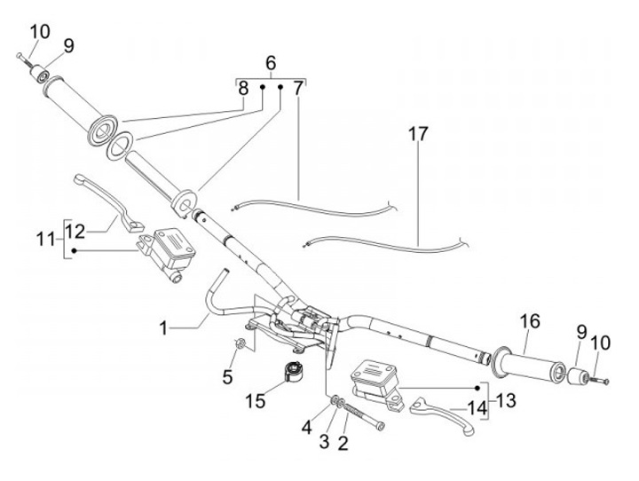 Guidon -PIAGGIO- Vespa GT 250 (ZAPM45102), Vespa GTV 125 (ZAPM31301), Vespa GTV 250 (ZAPM45102), Vespa GTV 300 (ZAPM45201)