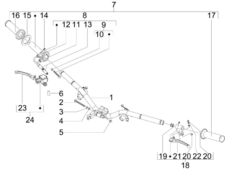 Guidon -PIAGGIO- Vespa S 125 (ZAPM44302, ZAPM68101, ZAPM68301), Vespa S 150 (ZAPM44402, ZAPM68201), Vespa S 50 (ZAPC38103, ZAPC38600, ZAPC38402, ZAPC38901)