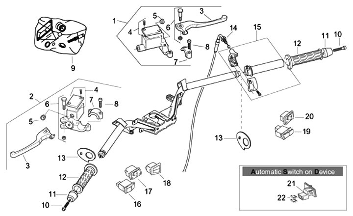 Commutateur clignotant -APRILIA- Amico, Atlantic, Guliver, Leonardo, Mojito Retro, Rally, Sonic, SR, SR DiTech