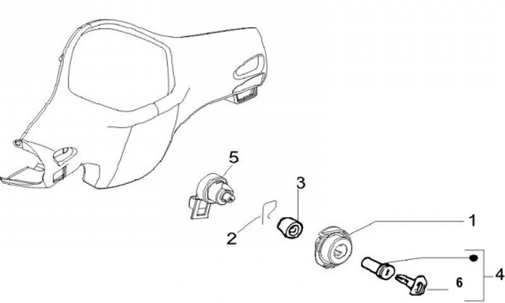 Collier on-off serrure -PIAGGIO- Vespa GT 250 (ZAPM45102), Vespa GT L 125 (ZAPM31100, ZAPM31101), Vespa GT L 200 (ZAPM31200), Vespa GTS 125 (ZAPM31300), Vespa GTS 250 (ZAPM45100, ZAPM45101), Vespa GTS 300 (ZAPM45200, ZAPM45202), Vespa GTS Super 125 (ZAPM4