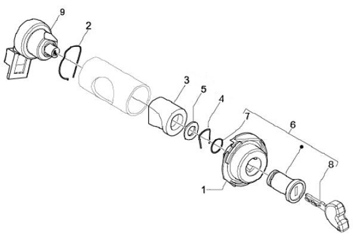 Collier on-off serrure -PIAGGIO- Vespa GT 250 (ZAPM45102), Vespa GT L 125 (ZAPM31100, ZAPM31101), Vespa GT L 200 (ZAPM31200), Vespa GTS 125 (ZAPM31300), Vespa GTS 250 (ZAPM45100, ZAPM45101), Vespa GTS 300 (ZAPM45200, ZAPM45202), Vespa GTS Super 125 (ZAPM4