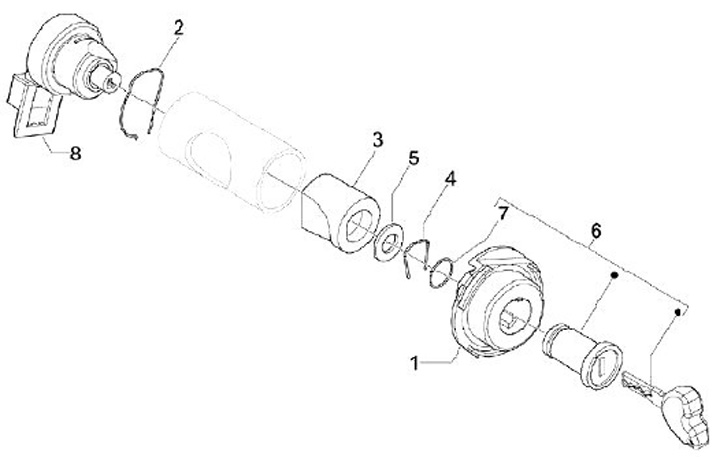 Collier on-off serrure -PIAGGIO- Vespa GT 250 (ZAPM45102), Vespa GT L 125 (ZAPM31100, ZAPM31101), Vespa GT L 200 (ZAPM31200), Vespa GTS 125 (ZAPM31300), Vespa GTS 250 (ZAPM45100, ZAPM45101), Vespa GTS 300 (ZAPM45200, ZAPM45202), Vespa GTS Super 125 (ZAPM4