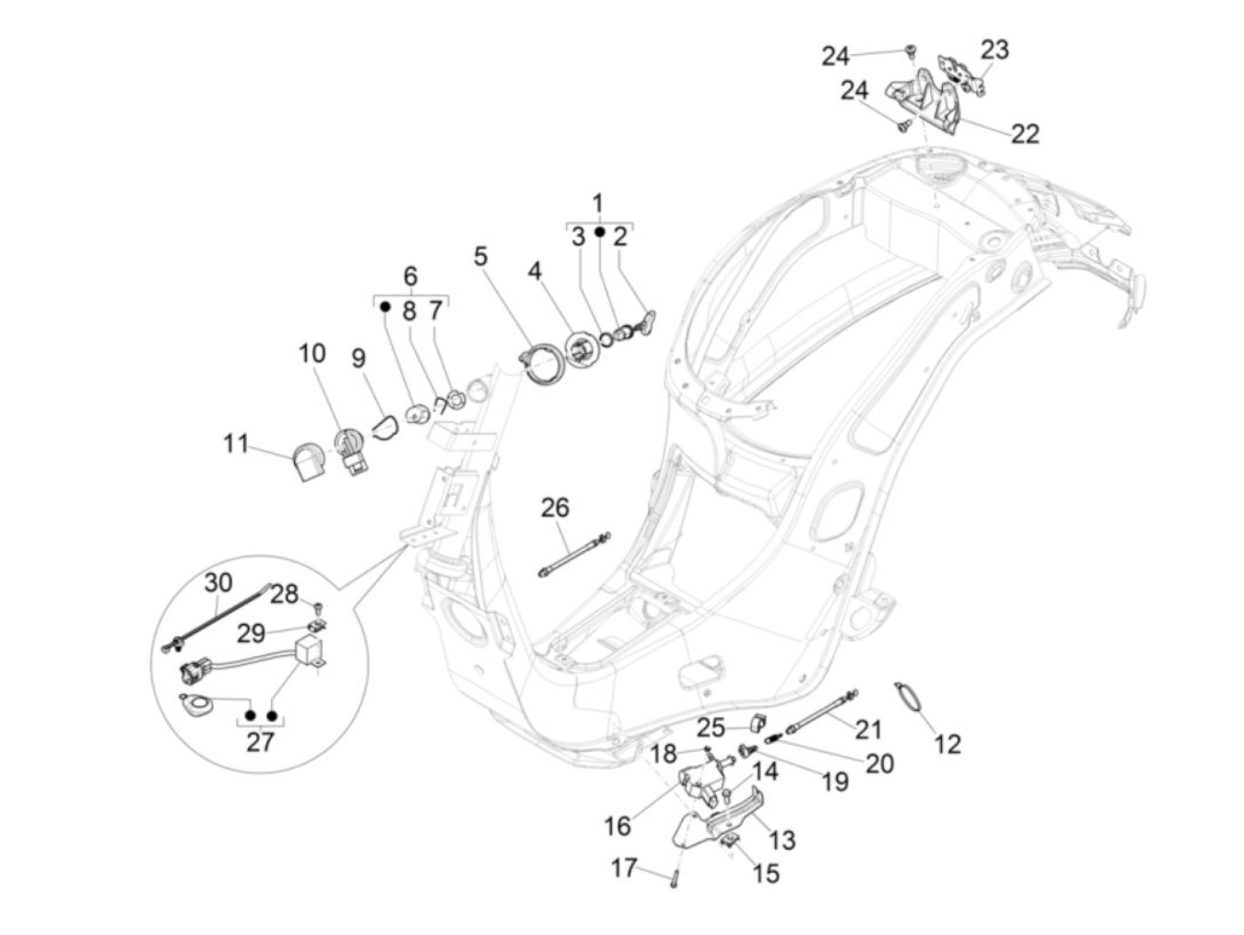 Collier on-off serrure -PIAGGIO- Vespa GTS 125 (ZAPMA3100, ZAPMA3200, ZAPMA3700), Vespa GTS 150 (ZAPMA3200, ZAPMA3100), Vespa GTS 300 (ZAPMA3300), Vespa GTS HPE 300 (ZAPMA3600, ZAPMD310), Vespa GTS Super 125 (ZAPMA3100, ZAPMA3200, ZAPMA3700), Vespa GTS Su
