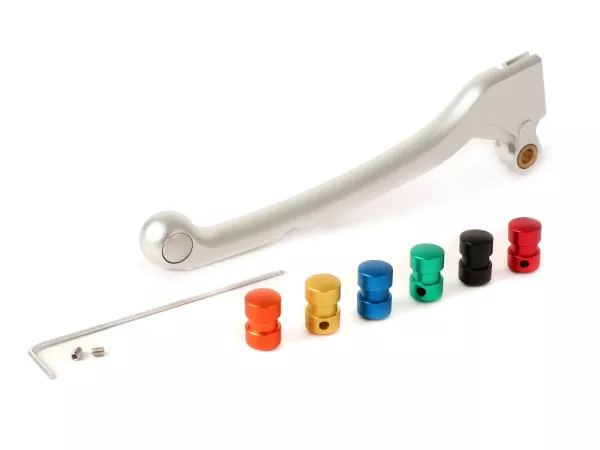 Les normes élevées de BIKERS Customparts sont visibles dans de nombreux détails. Les supports de levier les plus utilisés ou la portée du levier finement réglable sont une nouveauté dans cette gamme de prix. Les entrées en aluminium colorées et interchangeables constituent un autre point de vente unique des leviers BIKERS, au style unique.