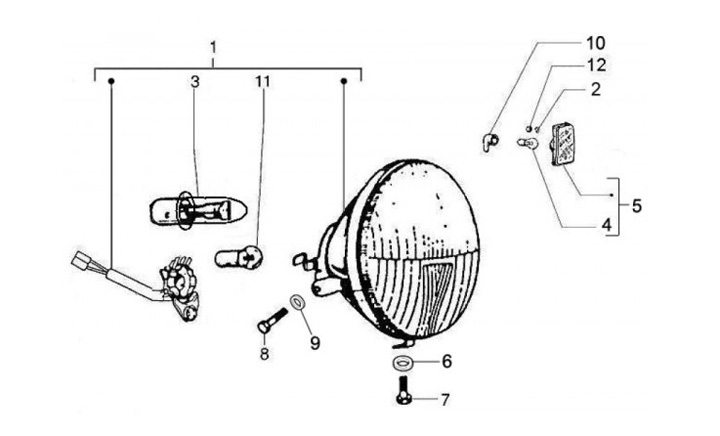 Optique avant -PIAGGIO Ø=146mm- Vespa PX Lusso - H4, vitre transparente, Déviation à droite