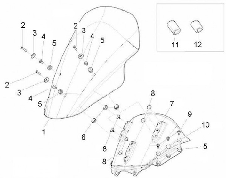 Vis de chassis M6 x 25mm sans épaulement -PIAGGIO- Tête Phillips