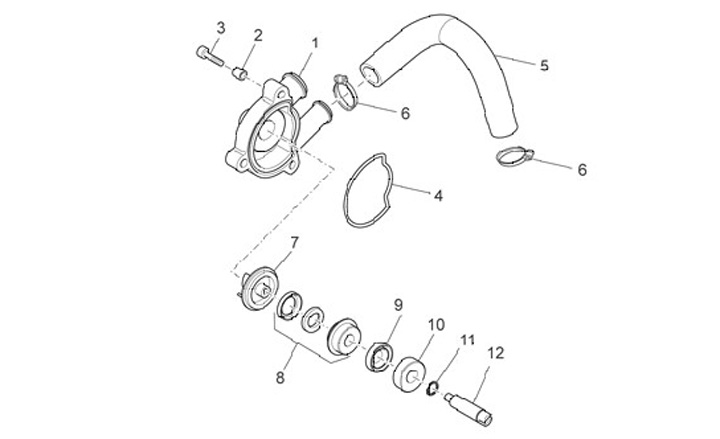Ra ccort de pompe à eau -APRILIA- Morini 50 cc (type Aprilia/Suzuki)