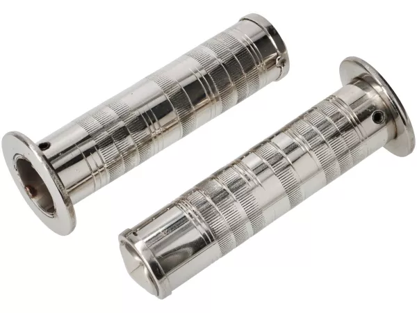 Ces poignées de guidon custom en acier inoxydable sont fabriquées exactement pour la dimension intérieure plutôt inhabituelle de Ø 27 mm- parfaites pour les Lambretta Série 1 et 2. Les poignées s'adaptent proprement sur le tube, ont l'air de très bonne qualité grâce au motif torsadé et s'adaptent visuellement particulièrement bien aux scooters classiques, discrètement transformés.