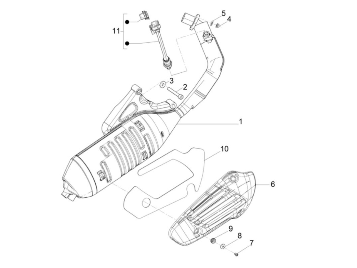 Plaque anti-chaleur pot d’échappement -PIAGGIO- Vespa Primavera 125 (ZAPM81100, ZAPM81101, ZAPMA1100, RP8M82500, ZAPMA1101, ZAPMD1100), Vespa Primavera 150 (ZAPMA1200, ZAPM81200, ZAPM81201, ZAPMA1201, ZAPMD120), Vespa Primavera 50 (ZAPCA0100, ZAPCA0200, Z