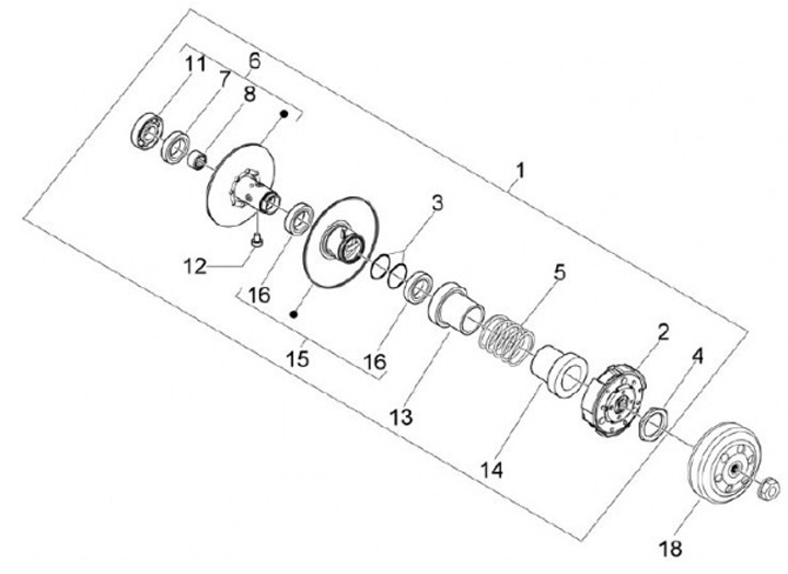Ensemble poulie avec embrayage -PIAGGIO- Vespa ET2 50, ET2 inietione 50, LX 50, LXV 50, S 50, Piaggio Liberty 50, Zip II 50, Fly 100, Free 50, Free 100, TPH 50, NRG MC3 50, Gilera Stalker, Aprilia Scarabeo 100, Derbi Atlantis 100