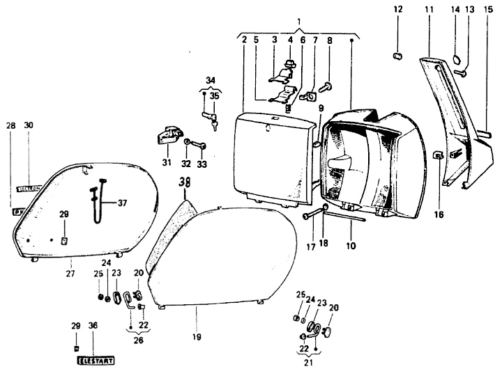 Fermeture portière moteur -PIAGGIO- Vespa PK, PK S, PK S Arcobaleno, PK S automatique