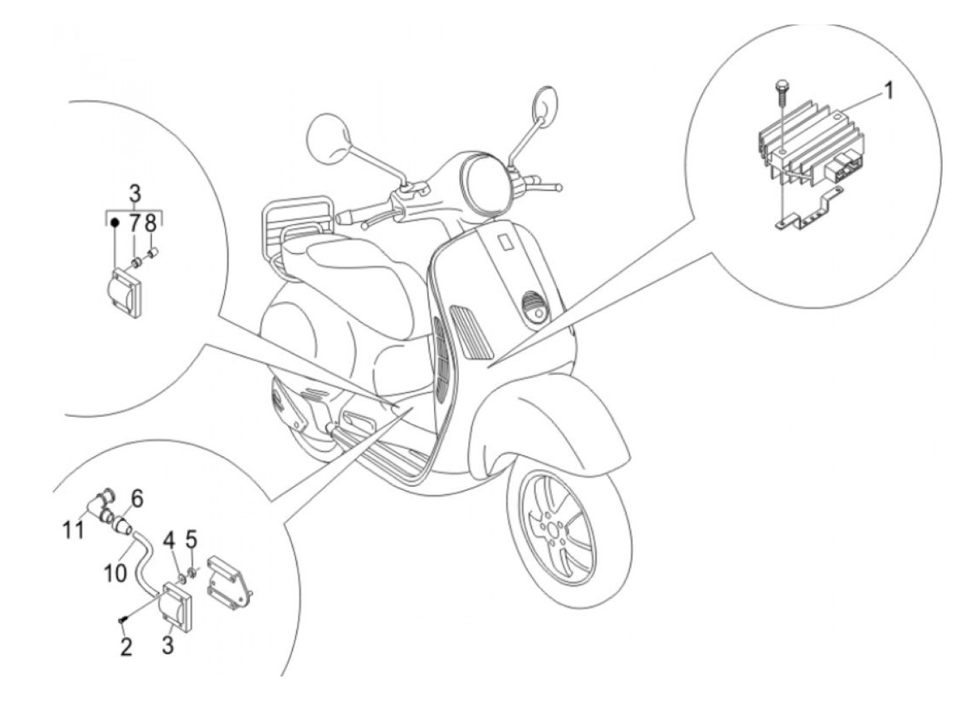Régulateur de tension -OEM QUALITÄT- 8-cosses 12V avec relais clignotant - Piaggio/ Gilera 50 cc 2-temps (Vergasermodelle, à partir du modèle 1998), Vespa S, LX, LXV, Sprint 50, Primavera 50, ET4 125ccm (ZAPM04000 à partir du modèle 1998), Aprilia Mo