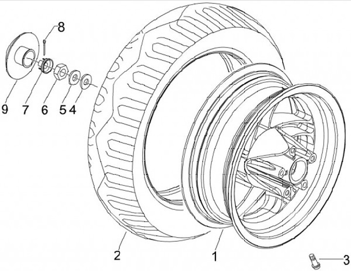 Écrou roue arrière -PIAGGIO- Vespa PX (1984-), T5 125cc, PK XL, Cosa, Piaggio automatique, Gilera automatique