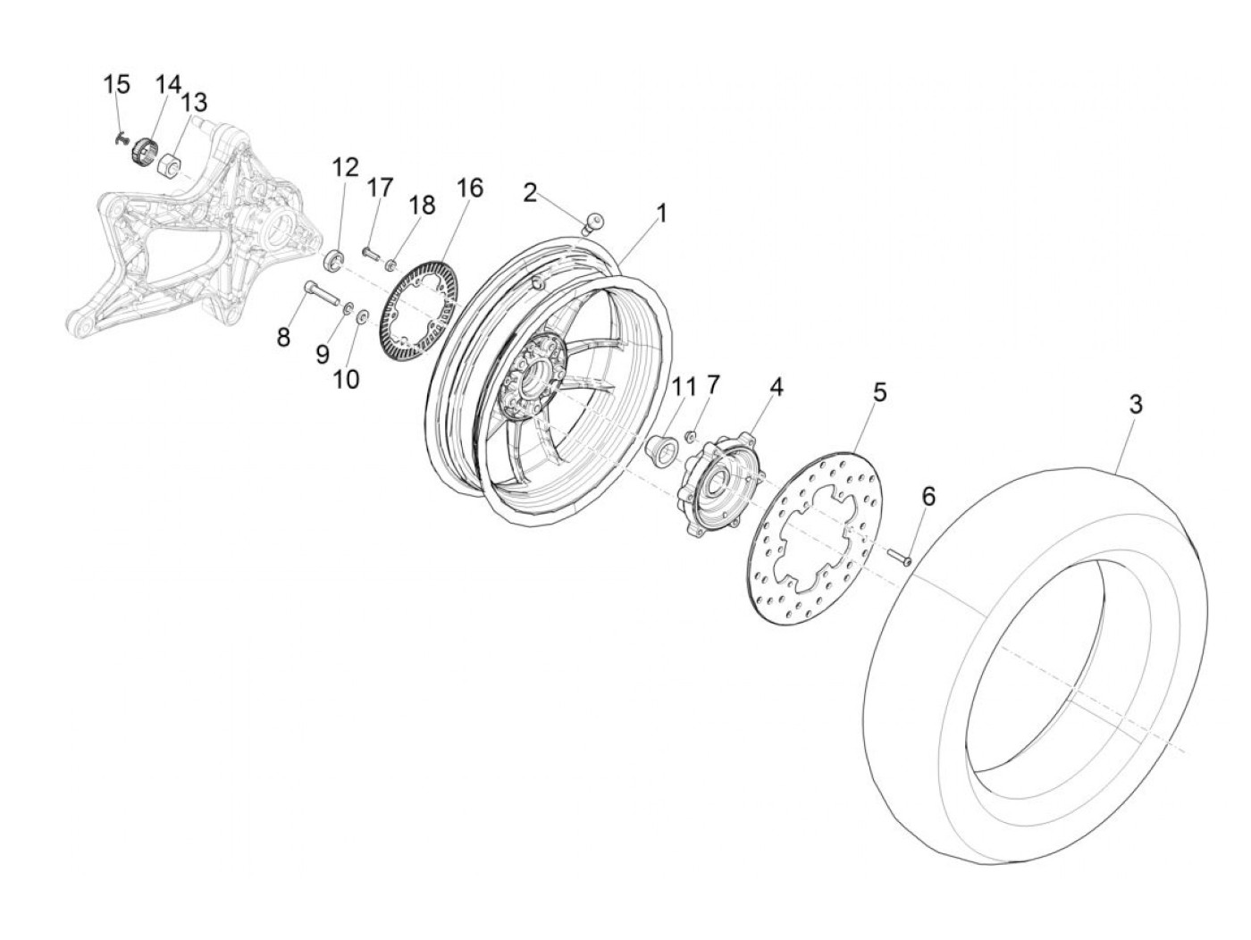 Entretoise axe de roue arrière, petit -PIAGGIO- Vespa GTS 125 (ZAPMA3100, ZAPMA3200, ZAPMA3700), Vespa GTS 150 (ZAPMA3200, ZAPMA3100), Vespa GTS 300 (ZAPMA3300), Vespa GTS HPE 300 (ZAPMA3600, ZAPMD310), Vespa GTS Super 125 (ZAPMA3100, ZAPMA3200, ZAPMA3700
