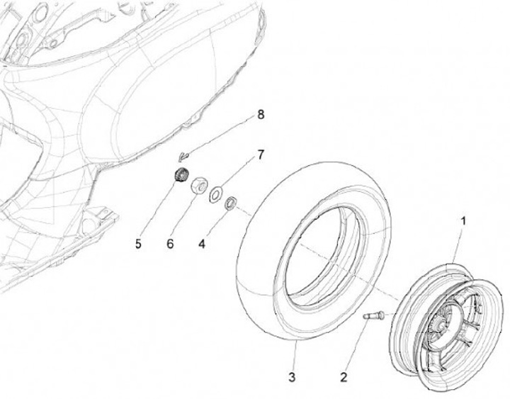 Écrou roue arrière -PIAGGIO- Vespa PX (1984-), T5 125cc, PK XL, Cosa, Piaggio automatique, Gilera automatique