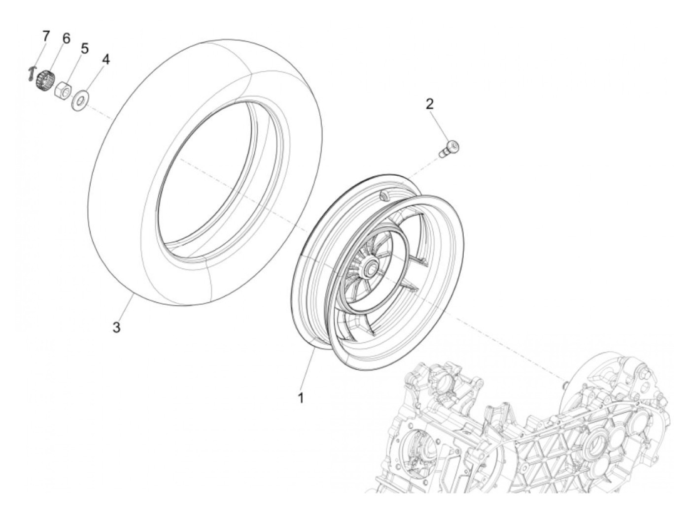 Jante arrière, argenté -PIAGGIO 3.00-12 pouces, Ø tambour de frein=140mm - Vespa Primavera 125 (ZAPMA1100, ZAPMA1101, ZAPMD1100), Vespa Primavera 150 (ZAPMA1200, ZAPMA1201, ZAPMD120)