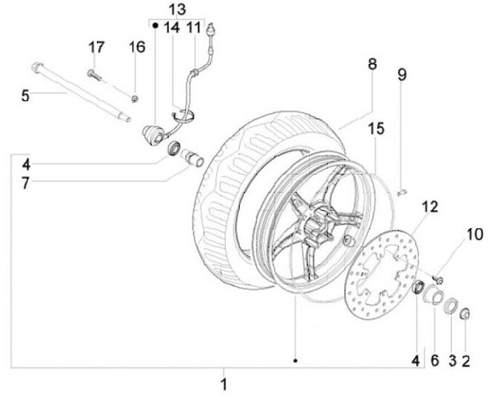 Axe de roue avant -PIAGGIO- NRG Power (ZAPC45), Gilera Runner (2006-) (ZAPC46, ZAPM46)
