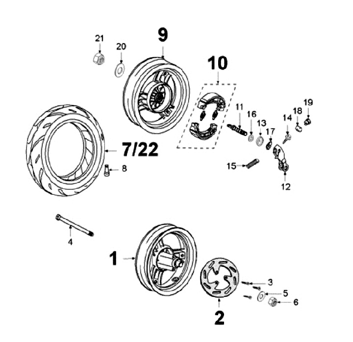Peugeot Ludix 2 50 Trend (2008, VGAL1AAFA, Typ RL2) 12 Zoll