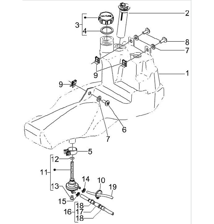 Robinet d’essence -101 OCTANE- à vide - pour Aprilia, Piaggio, Vespa, Malaguti, Peugeot, MBK, Derbi, Benelli, Yamaha - Ø=15mm