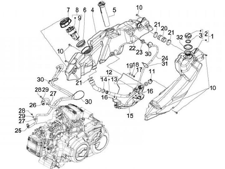Bouchon de réservoir -PIAGGIO- Gilera Fuoco, GP, ICE, Stalker, Piaggio Beverly, Carnaby, Fly, Free, Hexagon, Liberty, MP3, NRG, NRG MC2, NRG MC3, NRG Extreme, NTT, Storm, Sfera RST, SKR, Skipper, TPH, TPH X, X7, X8, X9, Zip, Vespa ET2, ET4, GT, GTV,