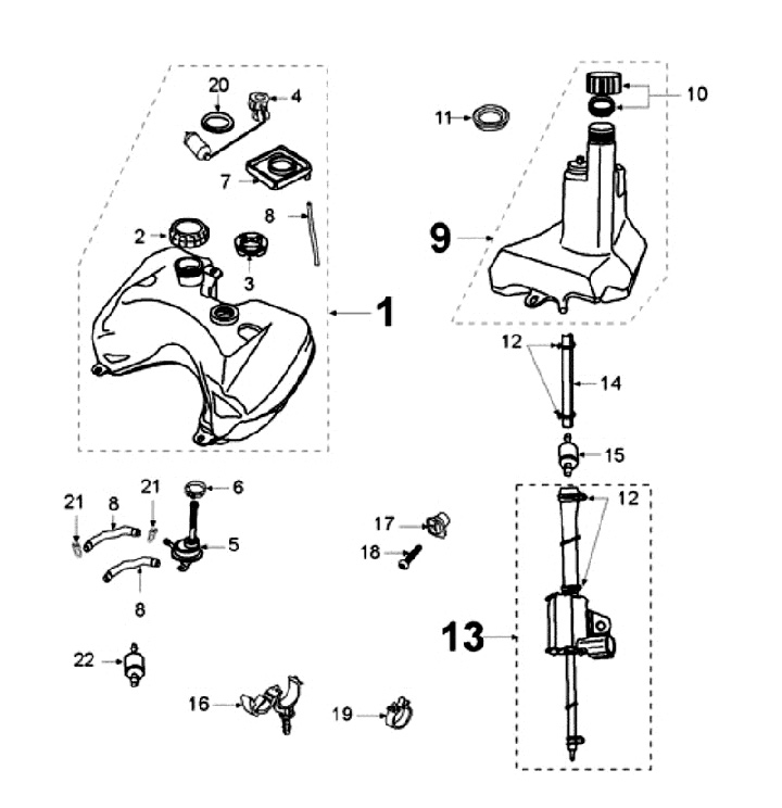 Robinet d’essence -101 OCTANE- à vide - pour Aprilia, Piaggio, Vespa, Malaguti, Peugeot, MBK, Derbi, Benelli, Yamaha - Ø=15mm