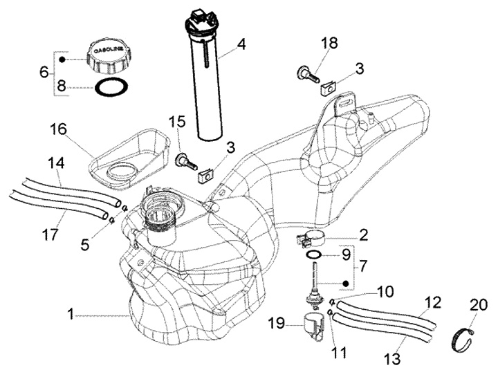 Bouchon de réservoir -PIAGGIO- Gilera Fuoco, GP, ICE, Stalker, Piaggio Beverly, Carnaby, Fly, Free, Hexagon, Liberty, MP3, NRG, NRG MC2, NRG MC3, NRG Extreme, NTT, Storm, Sfera RST, SKR, Skipper, TPH, TPH X, X7, X8, X9, Zip, Vespa ET2, ET4, GT, GTV,
