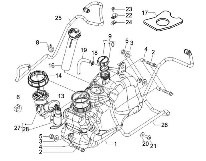 Jauge d'essence -PIAGGIO- Vespa GT 250 (ZAPM45102), Vespa GT L 125 (ZAPM31101), Vespa GT L 200 (ZAPM31200), Vespa GTS 125 (ZAPM31300), Vespa GTS 250 (ZAPM45100, ZAPM45101), Vespa GTS 300 (ZAPM45200, ZAPM45202, ZAPMA3300), Vespa GTS HPE 300 (ZAPMA3600), Ve