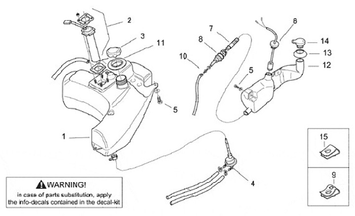 Robinet d’essence -101 OCTANE- à vide - pour Aprilia, Piaggio, Vespa, Malaguti, Peugeot, MBK, Derbi, Benelli, Yamaha - Ø=15mm