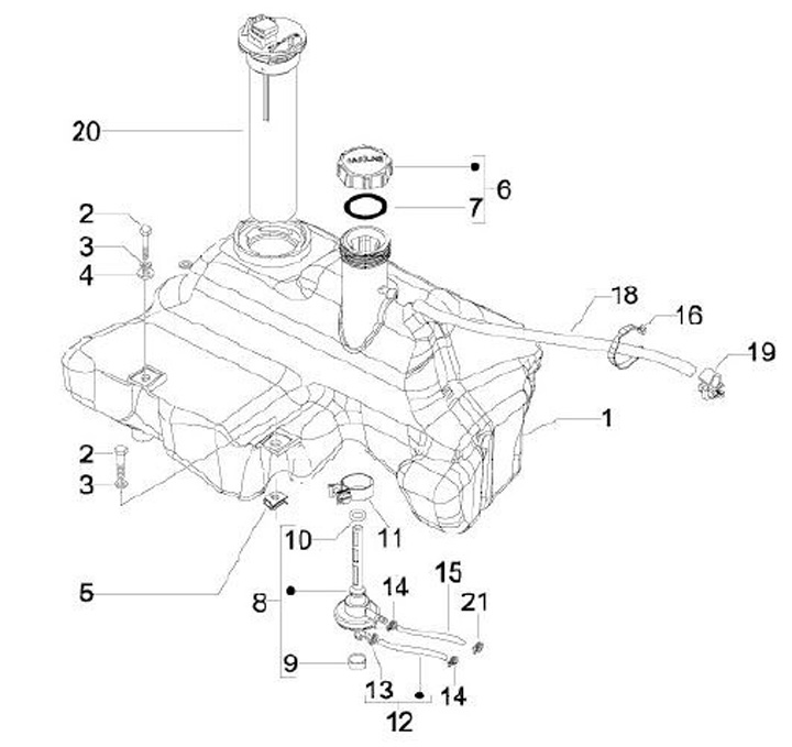 Réservoir de carburant -PIAGGIO- Vespa ET2 50 (ZAPC16000, ZAPC12000, ZAPC38100), Vespa ET4 125 (ZAPM19000, ZAPM04000), Vespa ET4 150 (ZAPM19000), Vespa ET4 50 50 (ZAPC26000, ZAPC26100), Vespa LX 125 (ZAPM44100, ZAPM44300), Vespa LX 150 (ZAPM44200, ZAPM444