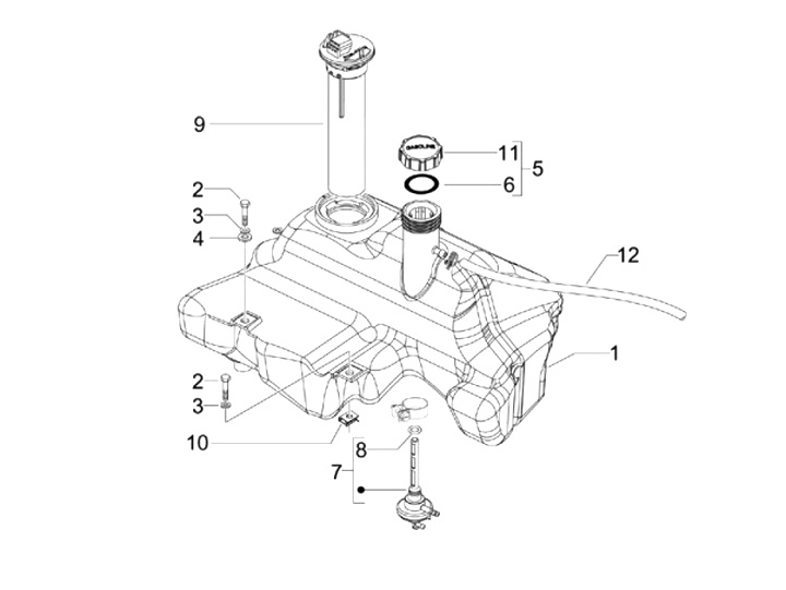 Réservoir de carburant -PIAGGIO- Vespa ET2 50 (ZAPC16000, ZAPC12000, ZAPC38100), Vespa ET4 125 (ZAPM19000, ZAPM04000), Vespa ET4 150 (ZAPM19000), Vespa ET4 50 50 (ZAPC26000, ZAPC26100), Vespa LX 125 (ZAPM44100, ZAPM44300), Vespa LX 150 (ZAPM44200, ZAPM444