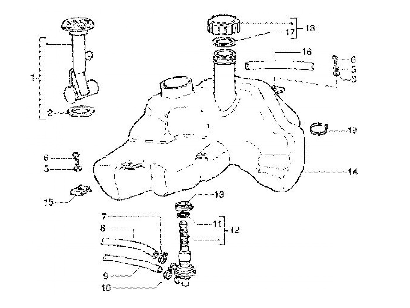 Jauge d'essence -PIAGGIO- Vespa ET2 50 (ZAPC16000, ZAPC12000, ZAPC38100), Vespa ET4 125 (ZAPM19000), Vespa ET4 150 (ZAPM19000), Vespa ET4 50 50 (ZAPC26100), Piaggio Skipper 125 (ZAPM21000, ZAPM12000), Piaggio Skipper 150 (ZAPM13000, ZAPM21000), Derbi Boul
