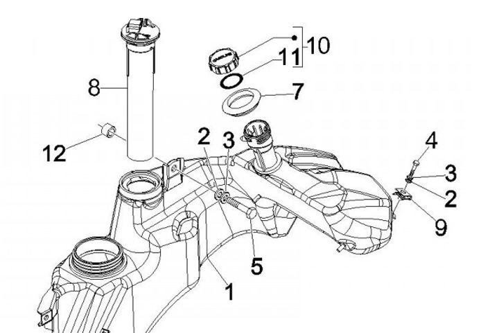 Réservoir de carburant -PIAGGIO- Vespa GT 250 (ZAPM45102), Vespa GTS 250 (ZAPM45100, ZAPM45101), Vespa GTS 300 (ZAPM45200, ZAPM45202, ZAPMA3300), Vespa GTS HPE 300 (ZAPMA3600), Vespa GTS Super 125 (ZAPM45300, ZAPM45301), Vespa GTS Super 300 (ZAPM45200, ZA