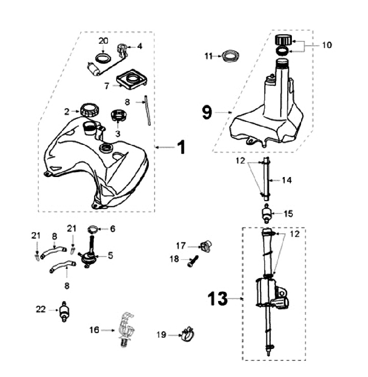 Tank und Benzinpumpe