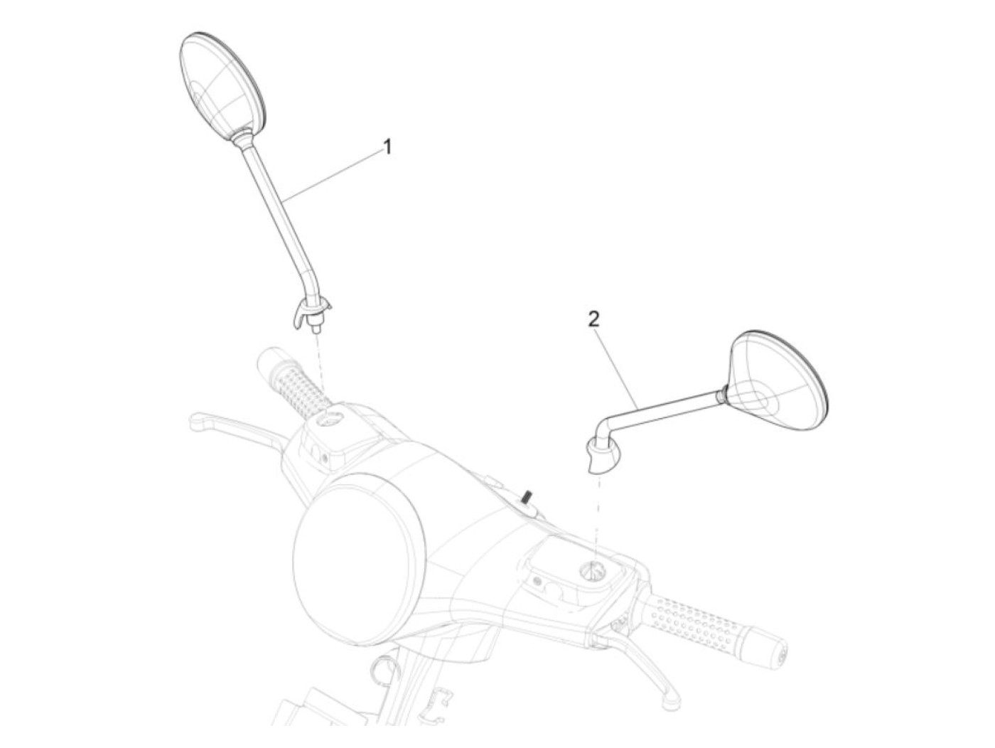 Rétroviseur, chromé, coté gauche -PIAGGIO- Vespa GTS 125 (ZAPMA3700), Vespa GTS HPE 300 (ZAPMA3600, ZAPMD310), Vespa GTS Super 125 (ZAPMA3700), Vespa GTS Super HPE 300 (ZAPMA360, ZAPMD3100)