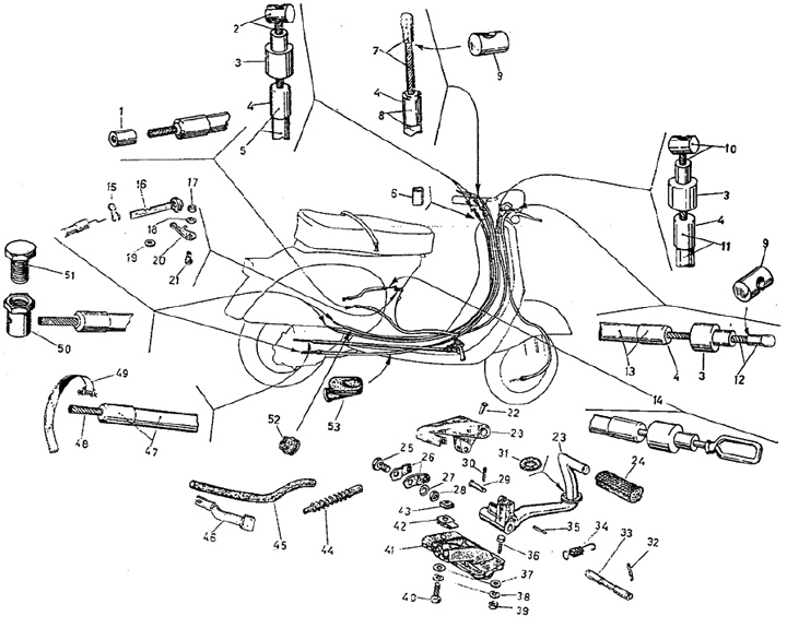 Guidage câbles de vitesse -PIAGGIO- Vespa PX, T5 125cc, Rally, TS, Sprint, Sprint Veloce, GT, GTR, GL, Super, SS180, V50, PV125, ET3, PK S, PK XL, PK XL2
