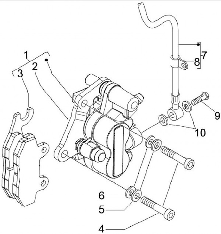 Étrier de frein avant -HENG TONG- Gilera Runner 50 (ZAPC14, ZAPC36), ICE, Stalker (ZAPC13, ZAPC40), Piaggio Storm (TEC1T, ZAPC29), NRG (SAL1T, ZAPC18), NRG Extreme (ZAPC21), NRG MC3 (ZAPC21, ZAPC32), NRG Power (ZAPC45), NTT (SAL1T), Typhoon (TEC1T, TEC2T,