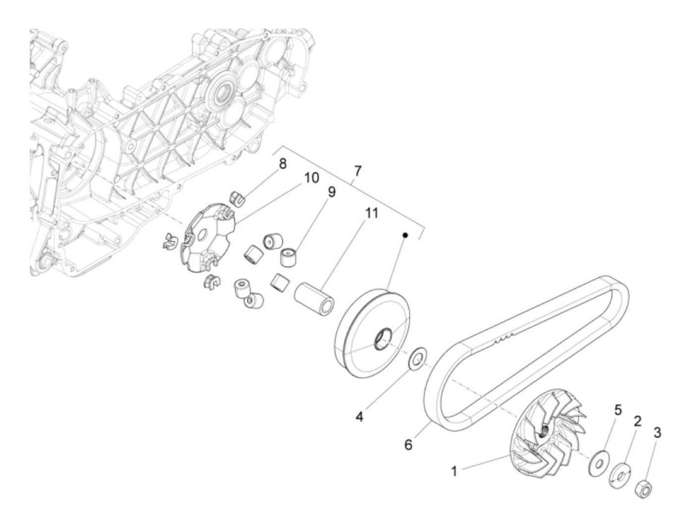 Variateur -PIAGGIO- Vespa Primavera 150 (ZAPM81200, ZAPM81201, ZAPMA1200, ZAPMA1201, ZAPMD120), Vespa Sprint 150 (ZAPM81401, ZAPMA1400, ZAPMA1401, ZAPMD1201), Vespa 946 150 (ZAPM8020, ZAPM80200, ZAPM808G, ZAPMA7200, ZAPMA78G), Vespa LT 150 (RP8M66603), Pi