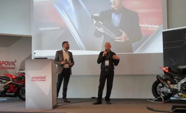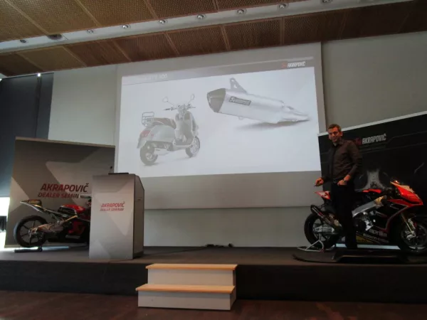 Lors des séminaires des concessionnaires, la plupart des fabricants donnent un aperçu plus détaillé du processus de production ainsi que du développement et de la fabrication de leurs produits. Outre des aperçus intéressants de la production, on y trouve également de nombreuses informations utiles pour la route. La législation et les normes européennes changent constamment et de nombreuses sources d'informations utiles pour les revendeurs sont distribuées afin que les clients puissent obtenir le bon système d'échappement pour leur véhicule et circuler en toute légalité.Chaque département, du développement à la production et à la distribution, est présenté. Même le fondateur de l'entreprise, Igor Akrapovic, a tenu à présenter lui-même en quelques mots son entreprise fondée en 1991.Outre des exposés intéressants où il est question de tester les matériaux bruts, la construction de prototypes et le développement ont également été abordés.Bien entendu, outre les domaines de l'automobile et de la moto, le secteur des scooters était également représenté.Les systèmes d'échappement innovants d'Akrapovic sont très appréciés des conducteurs de Vespa GTS. Les systèmes d'échappement ne séduisent pas seulement par leur sonorité, mais aussi par leur aspect élégant et leur excellente finition. Le système d'échappement des modèles GTS a également posé un petit défi aux développeurs : un élément, en particulier l'embout carré caractéristique, devait être fabriqué en Silent Esther, un matériau composite spécial de haute qualité, afin que l'embout puisse résister durablement aux températures élevées du pot final. Durable - un autre critère important chez Akrapovic - un produit qui ne remplit pas sa fonction à 100% et qui présente des défauts optiques ou techniques ne quitte pas les ateliers d'Akrapovic. La maxime du fondateur de l'entreprise, Igor Akrapovic, est ici la suivante : "Il n'y a pas de variation de la perfection". Sachant qu'à l'entrée du séminaire, on tombe directement sur un système d'échappement pour une Lamborghini Aventador qui représente l'équivalent de € 36.000,-, cette maxime est tout à fait compréhensible...