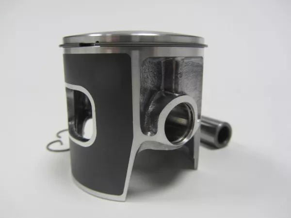 Le piston en fonte de 169 g est équipé par Pinasco d'un segment de piston rectangulaire de 1 mm et de fusibles en forme de G de 1 mm. L'indication du guidage du flux de gaz sous forme de petites surfaces biseautées sous l'axe du piston est très astucieuse. Cette "astuce" était souvent utilisée sur les pistons à longue jupe, avant que la mode ne soit à l'ouverture latérale du piston. Comme de nombreux cylindres modernes, le piston de la Zuera 135SS reçoit un revêtement de glissement supplémentaire. Pinasco ne fait pas d'expériences avec l'axe du piston. L'axe est délibérément allégé grâce à sa faible épaisseur de paroi.